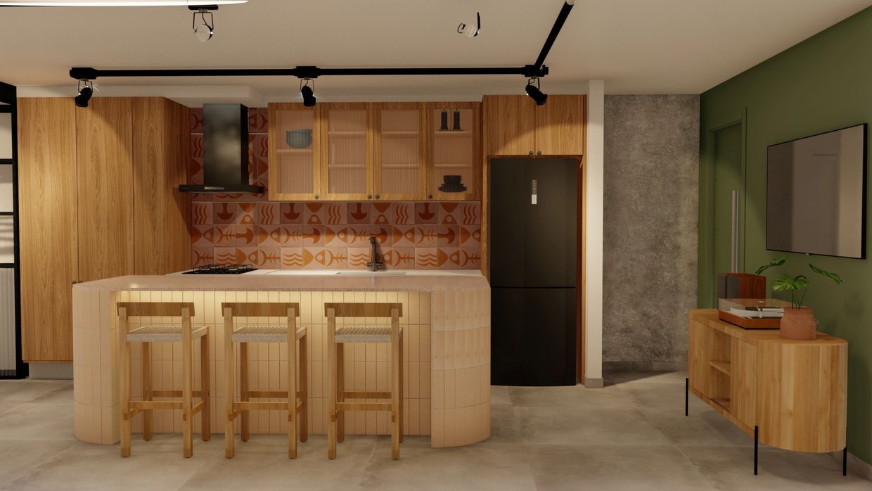 O Apartamento Pompéia nasceu assim: do sonho de um casal jovem que, em São Paulo, construiria seu primeiro lar. Vindos de outros estados, traziam na bagagem memórias afetivas e raízes culturais que, ao longo do projeto, foram ganhando forma e espaço. A princípio, acreditavam que o apartamento seria claro, com toques retrô e pinceladas pontuais de cor. Mas o processo revelou algo maior: um desejo profundo de se reconectar com suas origens e trazer a brasilidade como protagonista do conceito. Muitas vezes, o próprio projeto é também um caminho de autodescoberta.