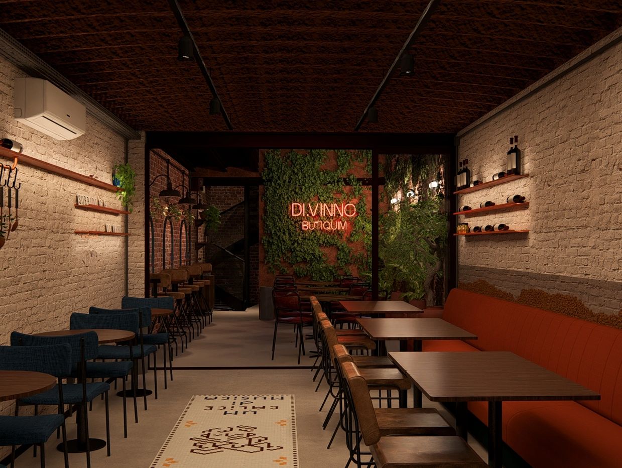 Todas as escolhas de materiais, formas e soluções foram guiadas pelo conceito da marca, unindo estética, funcionalidade e experiência. Cada detalhe — do balcão iluminado à textura das paredes, do mobiliário à iluminação — foi pensado para traduzir a essência calorosa e vibrante do Di.Vinno, criando um espaço que acolhe, encanta e conecta-se de forma autêntica com o seu público-alvo.